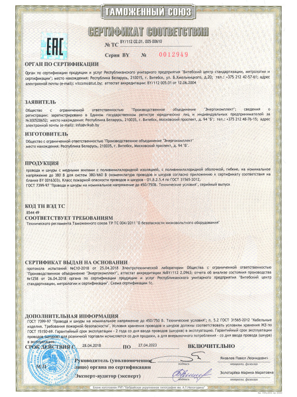 — основные жилы номинальным сечением 0,75 мм2